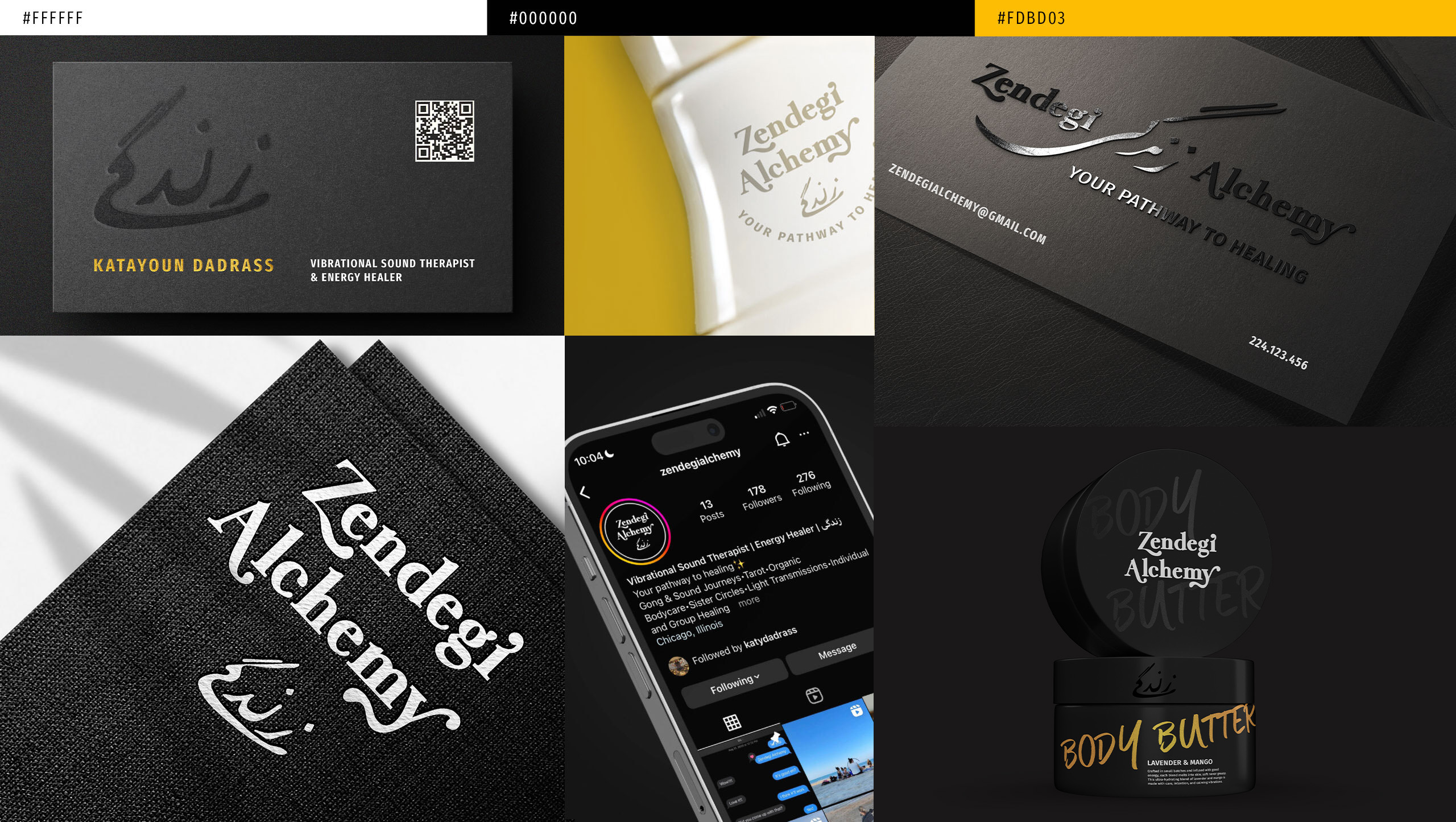 Market Positioning: The black/gold/white palette and premium execution positioned Zendegi Alchemy to compete in high-end wellness markets. The brand bridges intimate healing practice and luxury product line, attracting both individual clients seeking alternatives to burnout and corporate wellness partnerships.